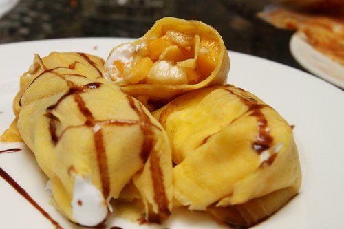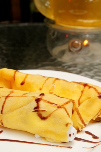随无花果柑橘茶附送的水果班戟..入口净系感觉到有好浓的香蕉味,,尽管影相的时候见到有芒果等水果,,不过食落口就全部都比香蕉抢晒D味道了..因为食左磅蛋糕,,所以呢个班戟我食唔晒..好悲催..