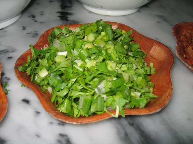 还有葱花和芫茜,在濑粉中放入萝卜干、葱花和芜茜,使濑粉更加好味道。
