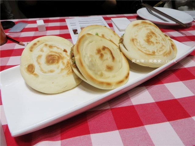 梁山黑猪肉夹馍:是我在广州吃过最好吃的肉夹馍了,形确如介绍所说的“金圈虎背梅花心”,口感外脆内紧实,只看着这片圆馍便有了食欲,而且黑猪肉的肉香味更足还完全不腻味,可惜的是经过一连串的美食下肚,实在是没法吃完整个馍,浪费了呢。