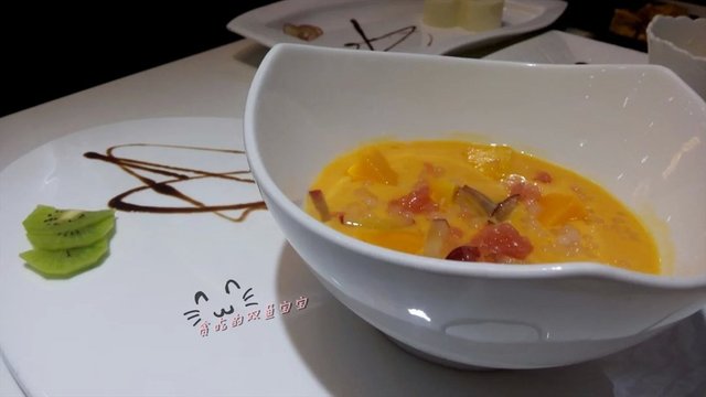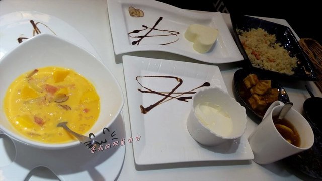 这顿最赞的食物!!!应该叫榴莲芝士慕斯吧,芝士味吃不大出来,但是榴莲味是远远闻都能闻到,真的有榴莲肉哦!有点像上次在喜栈吃到榴莲心太软的feel!比它家的奶冻好吃太多太多了!!!推荐!!!