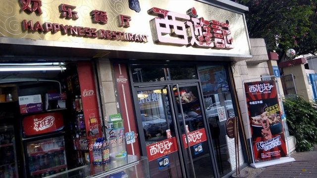 店员态度很好,还提议我们坐大桌子,说是食物很多,小桌子放不下的。好吧!于是我们坐了门口靠墙的位置。