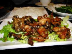 接下来上的田鸡直接把我给雷倒了,于是拿了之前拍在手机上的券细看,才发现这几个菜似乎完全不对版呢,遂把经理找来一问,竟然把我们当成团购餐了,而且套餐里还有我颇不喜欢的春卷,好在在我的再三坚持下最后还是把田鸡撤了,不过菜心和粉都已经吃过了我也不要求再换,只让他们把海鲜双拼和南美虾给我做上来就好了。好在是这个经理GG,换成老板娘不知道会出什么状况。