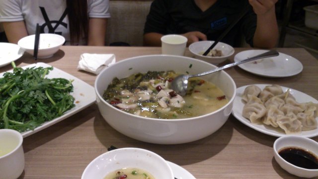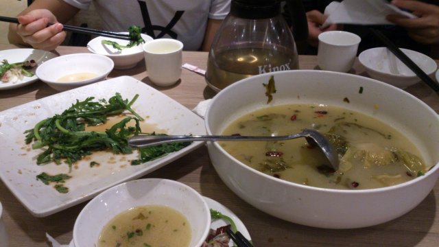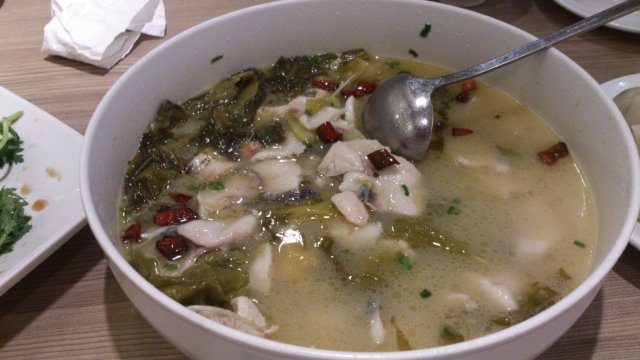 因为三个人去吃,于是又点了一份酸菜鱼,不会太辣的一道酸菜鱼,鱼的分量也不少,挺鲜嫩的鱼肉。
