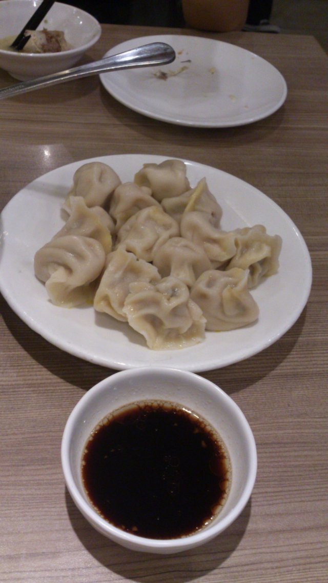 然后又上来一份饺子,饺子是属于北方那种厚皮的饺,蘸着醋吃,味道不错。