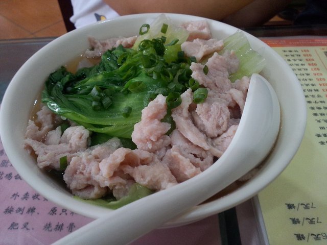 朋友说不想吃太油腻的东西,于是点了这个比较清淡的汤面。看起来确实很清淡。不过是挺好吃的。由于没有面了,所以换成了河粉,但是还是很好吃。如果是面的话,应该会更加好吃。肉末很滑,味道很不错。吃起来不会肥腻。汤底的味道也不错。很好喝的汤。分量也挺足的。很多肉片。