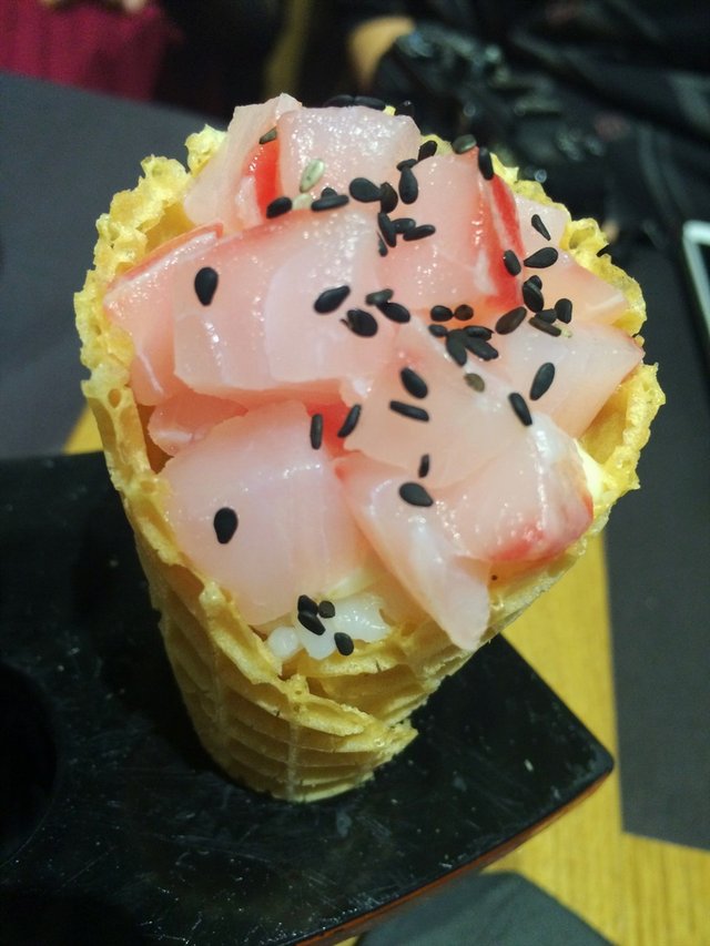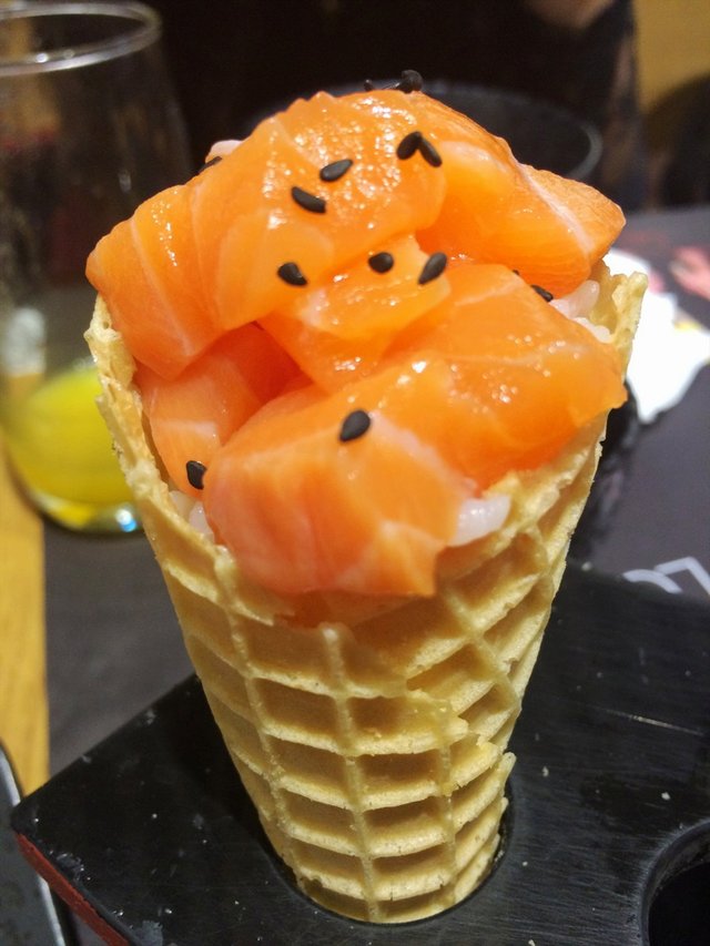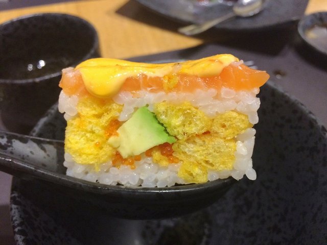 三文鱼寿司雪糕25元,寿司雪糕不贵呀••上层是鱼,中间有寿司饭,沙律酱,柚子酱,下面是水果••分量不小呢•••很新鲜的寿司吃法。