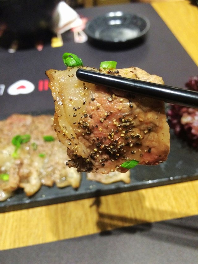 葱烧和牛刺身88元一份~盘子好特别,喜欢这个黑色的板状盘子,好有质感呀••和牛很好吃,味道重~