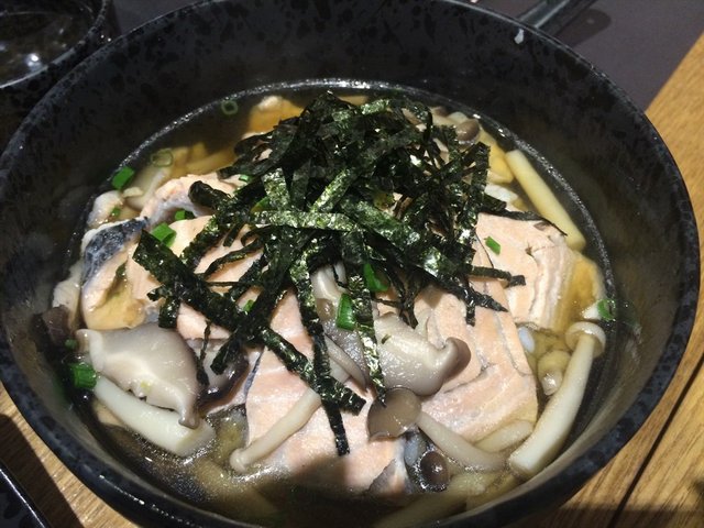 蘑菇三文鱼泡饭38元,第一次尝试泡饭这种东东,比我想象中好吃,三文鱼挺多的,煮熟的,味道不错呐~~