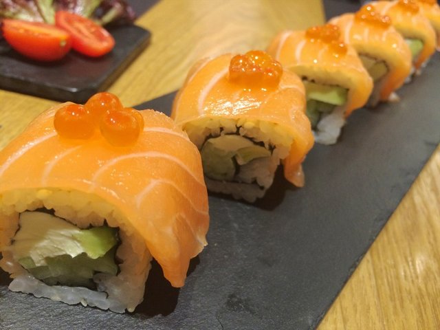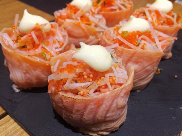 芝士青瓜三文鱼卷,48元一份,也是六件,其实还挺大分量的,三文鱼蛮新鲜,也是清新派呀••