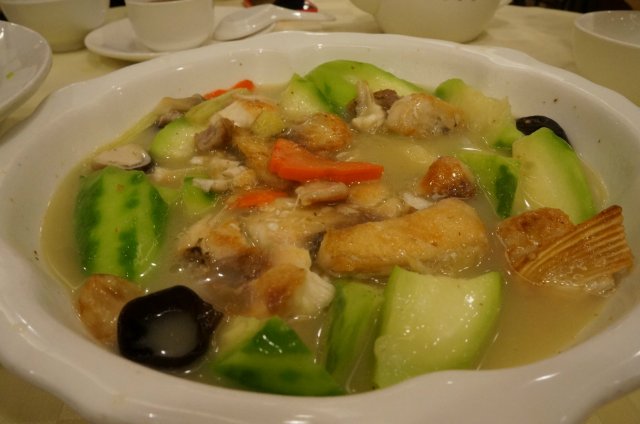蒸鱼煮腩丝瓜就感觉汤里的胡椒味过重,掩盖了丝瓜原有的鲜甜,导致这糖水不能喝。另外鱼腩味道一般,有少少老。