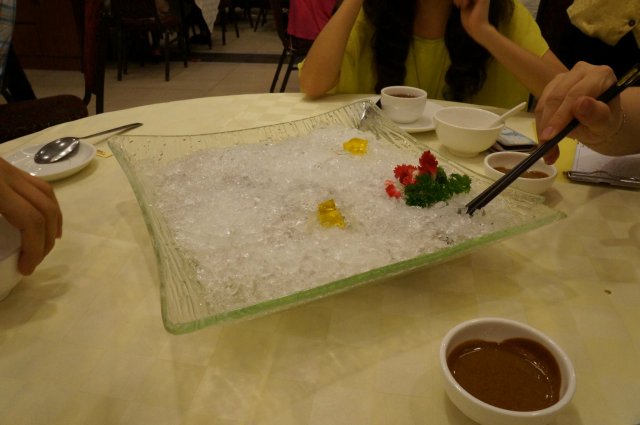 比较喜欢吃他的冰镇鳝片,上来的时候都是全部用冰盖住鳝片的,要在冰下面找鳝片,每一块鳝片都好大,好实肉爽口,点上芥末酱油,好味!芥末酱油比较浓,挺辣的,好过瘾。
