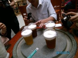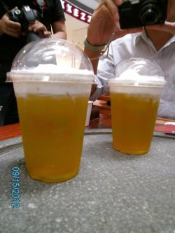 @雪盖茶,上了四杯雪盖,由于对各种茶色傻傻分不清楚,就一起写啦!上面那层“雪”非常好吃,很香甜细腻,单独吃很棒哦,要是跟下面的茶混合起来也不赖,像奶茶的味道。。这个月在搞活动哦,只需九元就可以享受一杯中杯的雪盖了喔!