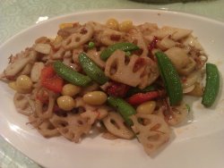 有亲戚系外面番黎,就等距试下久违既粤菜啦。呢间酒楼虽然价钱唔算实惠,但粤菜仲系做得几好既。煎藕饼,两片藕之间夹左的肉馅系度,煎香之后,打番个酸甜芡,开胃。荷塘五秀,可能因为季节关系,集唔齐五秀罗,但都搭配得几好。支竹凉拌木耳,所有配料都系白灼,加上少少调味料捞下,清清地,唔错。蒜蓉生菜,不过不失罗。红葱头油淋鸡,鸡质麻麻,但的味道调得唔错。煎让豆腐,肉馅唔错,但豆腐几滑。清蒸丁贵,鱼够新鲜,的肉都几实净,但唔知点解,条鱼骨中后段,好似骨折甘,有的畸畸地。子姜猪手,每次过黎吃饭必点既菜,味道酸甜适中,而且的猪手都淋身,垫底果的子姜,薄,爽,酸,正。咸甜薄餐,应该系半煎炸,所以的油相对多左的,个人认为甜既好吃的。