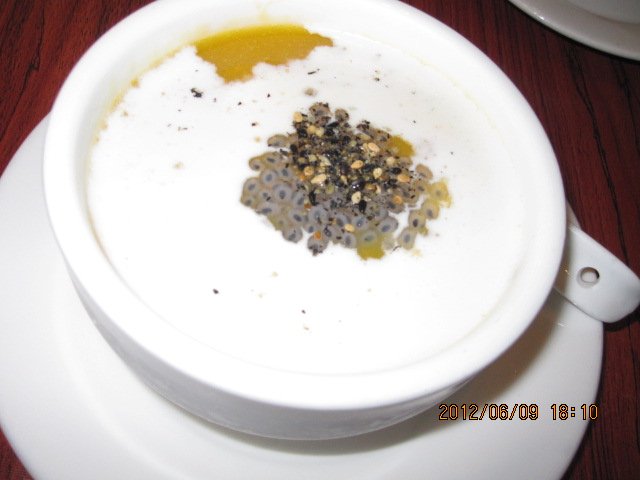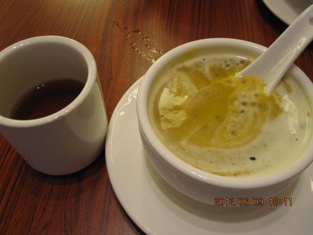 夏天走的很热,喝杯冰冰的甜品,在店里坐坐歇歇脚还是很不错滴!!!椰香黄金珍珠露,呵呵,这三种东西都概括进去了,椰奶、南瓜、兰香子。主要以南瓜为主了。调匀后的样子,和茶杯对比下就知道普通饭店吃饭的碗的大小了。味道嘛还是挺不错的了。我挺喜欢的~~~~~