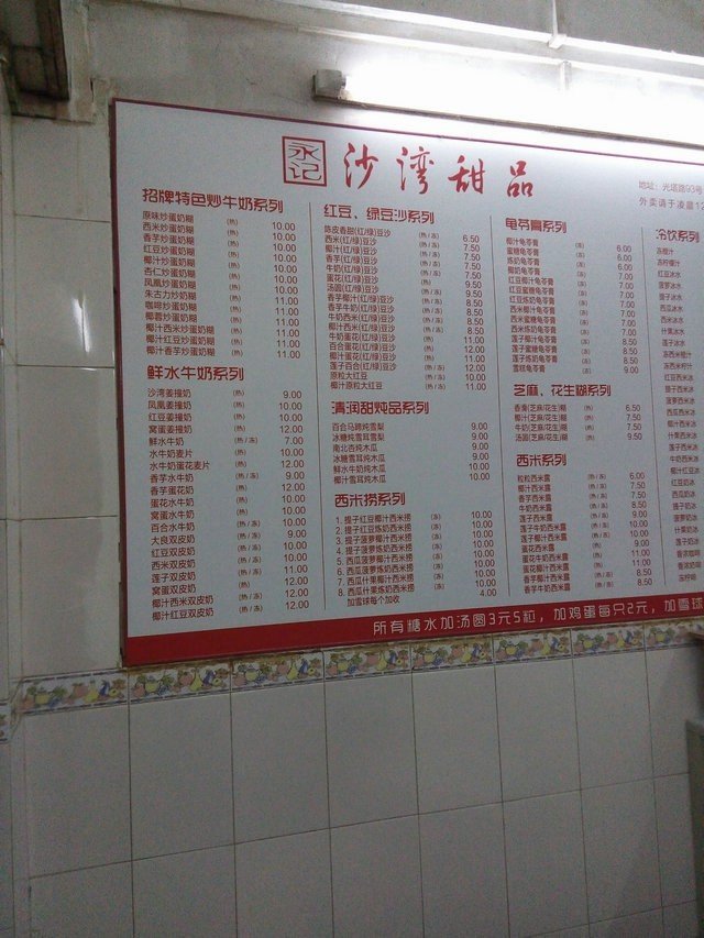 永记沙湾甜品 chotolate026等級42014-05-2343 瀏覽 關注 系小巷里面噶,朋友带我过来吃噶,环境系好一般,但系依然系 咁多人系度吃甜品。要咗碗招牌的炒奶糊,卖相一般啦,就系黄 黄地咁,不过入口真系几香几滑,而且味道比较特别,唔会太甜。 价钱实惠的粤式甜品越来越少啦,其实吃的系一种怀念的味道。以上食評乃用戶個人意見 , 並不代表OpenRice之觀點。讚好分享永记沙湾甜品 永记沙湾甜品 https://s.openrice.com/KtbT0m0jDCA00檢舉 張貼 評分4味道3環境3服務3衛生4抵食