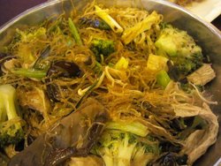 过年期间在海珠区闲逛,没几家饮食店开张,看到竹溪还照常营业,就跑了上去占个位置,叫上两个春节特制菜!大厅非常巨大,房间也非常多,之前是另一家海宝酒家,被竹溪兼并后,生意更旺了! 过年是时候,店家每桌布上红瓜子,收费5元,照顾等上菜的情绪之余,店家还能赚上一笔额外收入,不可谓不精明呀! 烧鹅,例牌,皮应该是脆的,肉质也不错,味道很正宗的五香粉味,只可惜生意太忙,是预先斩件,鹅油都顷住,影响口感! 大盘罗汉斋,里面的材料丰富,粉丝、冬菇、木耳、枝竹、雪耳、金针,最喜欢的是有很多西兰花,而且锅气非常足,预料不到的好吃! 由于服务员人手不足,很多事情需要自助,或者平时不是这样的吧!