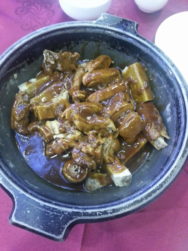 酒家开在三楼,地方很大装修也够高雅,灯光明亮地方干净,菜品多价格也实惠,经常有特价菜可以吃,点了一个碌鹅28元一份,用个大砂窝端上来份量很足,鹅肉很多不会因为底下垫着竽头就很少肉,鹅肉肉质结实够入味,味道不错,但底下竽头就一般了,虽然很粉但能吃得出煮的时间不太够,酱汁还没完全渗入里面所以咬开中间是白白的味道很淡。