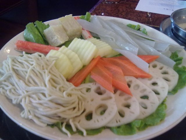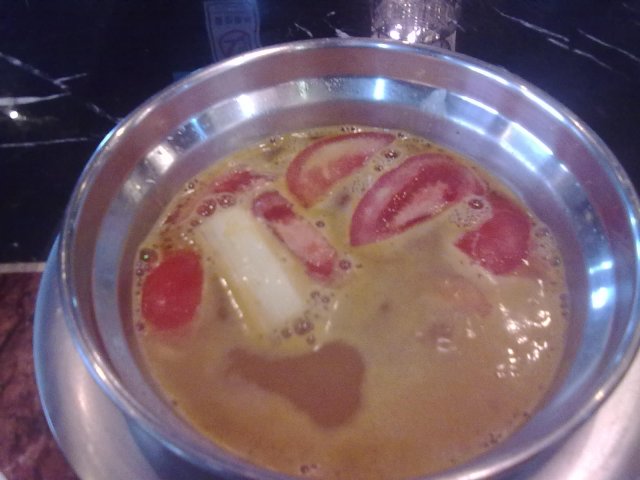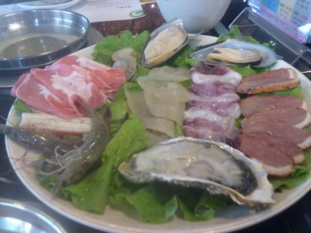 团购的2人套餐,有两款窝底;一份肥牛;一份海陆拼,内有鱿鱼,鲷鱼,鸭胸,虾,肥羊;一份手工面;一份鲜蔬杯;另外仲有几款小食,好似炸鸡块,小点心啊,凉菜~~同埋饮料自助,仲有水果同雪糕,最中意的自己混酱料~~~讲落79蚊两个人真是吃得几饱~~~我地选左一份蕃茄窝,酸酸甜甜,用来渌肉类和蔬菜真是好正,能令到肉类更加滑嫩,蔬菜更加清新~~老公要的是昆布窝底, 配海鲜一流,完全带出海鲜的鲜甜,尤其是搭配跳跳扎的虾同鱿鱼,渌完海鲜的汤用来煮面条,好味啊~~加上少少自己亲自动手调配的椒圈+麻油+牛肉香辣酱+香菜+豉油+沙茶酱的特制酱料一齐吃,完美的一餐~~