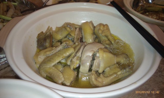 水晶鸡其实就是隔水蒸鸡,很多人都喜欢用鸡汁来拌饭吃,这次的师傅很用心的在鸡的底下铺上粉丝,让粉丝能够吸取鸡汁的精华。好吃得不得了!以上来粉丝就被瓜分干净了!还开玩笑说要另外再点一份粉丝。呵呵。。。