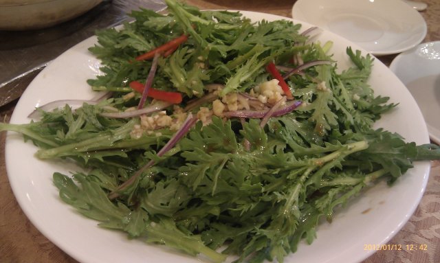 先来的是凉拌菜。这个是凉拌塘蒿,因为我不喜欢吃塘蒿,所以没有试,朋友很喜欢,一个人包办了一整碟!呵呵。。。他说这样做的塘蒿很爽口很清新。