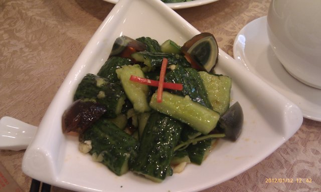 再来的是拍青瓜皮蛋,这个我喜欢!酸酸的很开胃!味道调得不错。虽然用的是醋,但一点都不刺激肠胃。很好~~