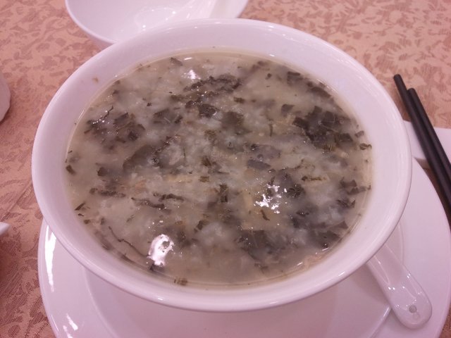 我点了菜干咸骨粥,本来想吃排骨粥的,但没有,服务员说差不多的,原来差好远好远,这个粥没什么味道,不好吃。价格:9.9元