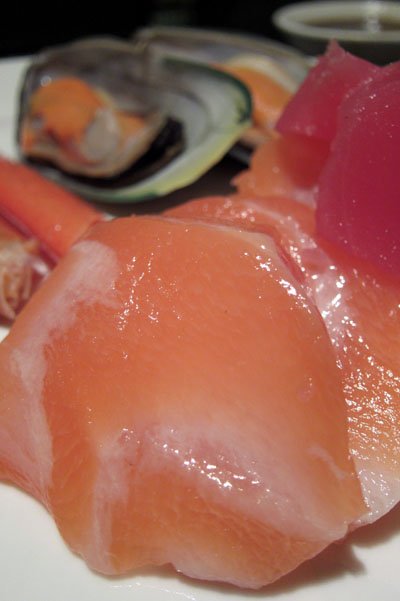 当晚是海鲜之夜,但感觉贵价的海鲜并不多,最赞的是生蚝,虽个头不大却很鲜甜。(搞不懂为啥现在的美食节目都教人吃蚝要即开连处理一下都不用,然后一定要连海水神马的通通倒入口中,才叫原生态美味。我的娘,那即开的蚝,肉上粘了点蚝壳的碎片,还有些乱七八糟的东西,再加上咸涩的海水,一口吞下,不知道是享受还是给自己的嘴巴行刑咧!)