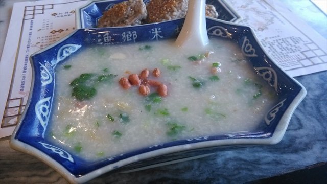 今天點了艇仔粥和加了三塊錢要一份芋絲餅。這個艇仔粥有點失望。粥底裡面水比較多。粥底是米是煮的很軟。但是沒有綿綿的口感水分較多。裡面的材料也比較簡單。而且竟然沒有油條在裡面。亮點是有點蝦肉。。粥也沒有鮮味。芋絲餅倒是不錯。雖然是油煎的但不算太油。端上來熱熱的聞著是真香。芋絲餅撒上芝麻更香。