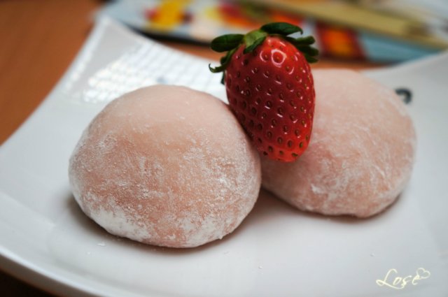 草莓糯米糍-原粒草莓,加上红豆蓉