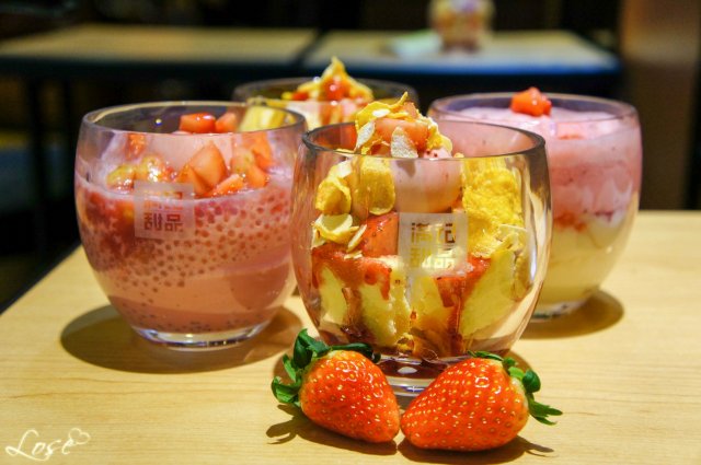 草莓豆腐花-店主话底层系自家磨噶豆腐花