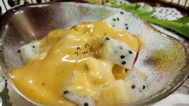 杂果宾治冰,三颗星:有点像芒果汁的味道,但不是现榨的那种,真是橙汁芒果汁傻傻分不清楚,里面的杂果就不够诚意了,都是罐头菠萝和椰果。但是小伙伴说这是全桌最好吃的。