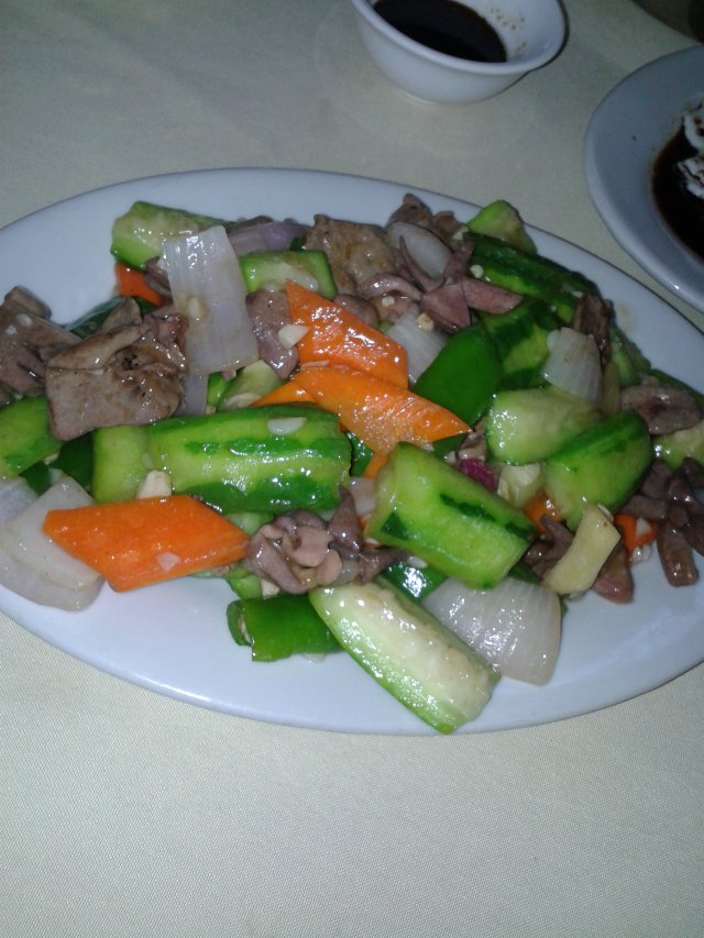 丝瓜炒鹅杂23元,炒得火候正好,丝瓜很清甜,鹅杂很多,整碟菜很大份。