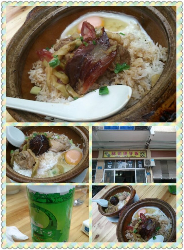 我点了中的排骨腊味饭,12元。还另外加了蛋,加蛋1.5元。分量适中吧,看到刚打下去蛋,先是搅匀它~~ 好开胃哦。里面有腊肉、腊肠、腊鸭、排骨、榨菜。料还挺多的。而且饭还有饭焦啊!好正啊!!真的不骗你,我觉得味道刚好,米饭不会硬,平时吃的就好像是又大伙猛猛的把米催熟一样,这里煮得很自然。不错。