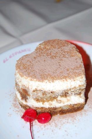 甜点是一份双人分量的提拉米苏,酒香浓重,却不会太甜,伴以车厘子,卖相精致!