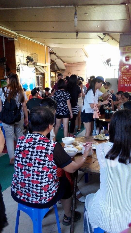 以前路过猫记,但没进去过,这次花了些时间才找到,顿时就被这里的场面吓呆了。这个店的环境比好一点的大排档还要差,顶上是一个大的铁棚和一些遮雨的塑料,下面大概40平方的地面放了20张石桌子和若干塑胶凳子,每桌最多能坐10个人。我们到的时候是下午1点,正是午饭时间,整个场子都坐满人,还有不少等位的在到处走动,那个人声鼎沸啊!我们等了几分钟后,旁边那桌刚好结账,所以就幸运地找到位置了。