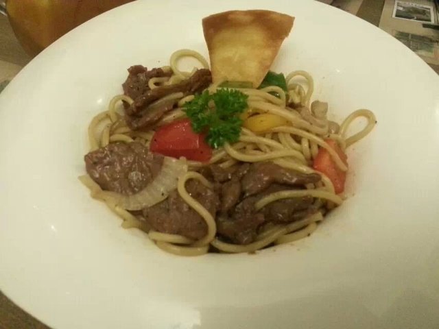 黑椒牛柳意粉:这份是朋友点的,平时我是不爱吃意粉的,不过试了觉得蛮不错的,意粉软硬适中,也比较入味,而且牛柳很嫩哦,下次再去的话主食会再点这个,而且性价比蛮高的。
