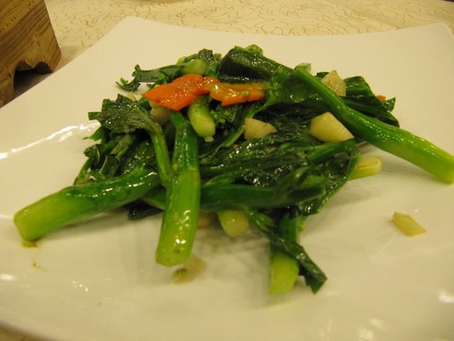 姜汁炒玉兰 (原价48元) 芥兰很嫩,吃起来带有姜酒香味,清爽碧绿。
