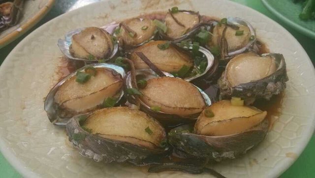 鲍鱼:虽然不是干鲍鱼,但是味道也很不错,个头算中等吧,放了葱、酱油。自己在家做的话都会很硬,很难煮的软,但是他家就煮得算不错啦,软硬适中吧,可以一试~