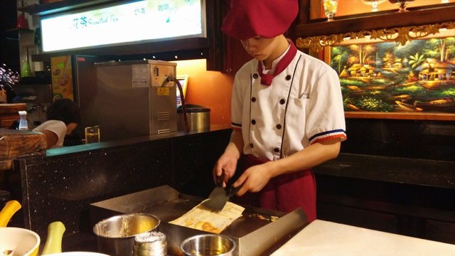 铁板烧也是超级难排队,一大堆人,而且不能指定要什么肉,烤到什么就给你什么。鸡扒加了柠檬,很好吃,居然是我觉得最好吃的一道菜。