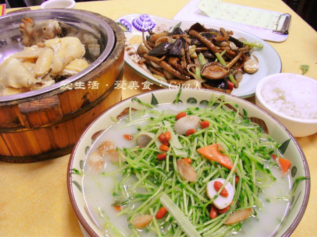 春天是吃菌的季节,正是菌类肥美的时候,什菌炒猪颈肉同时满足了想多试一个招牌菜的愿望,可惜此菜不够清爽,过多地使用了糖,味稍重而偏甜,没能突出菌类的新鲜,猪颈肉则显得过干了些,没有想像中那般爽脆,味道尚可。