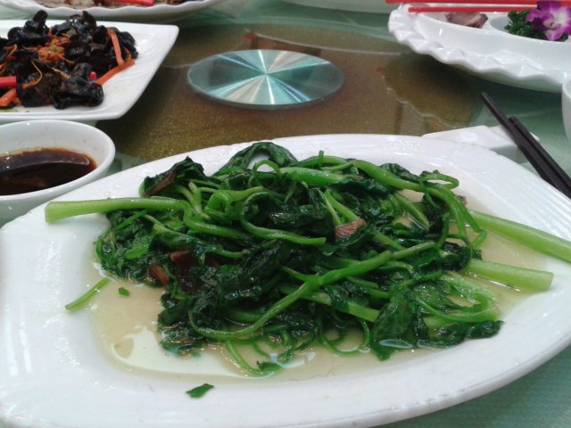 第七道菜是潮州介菜,样子看似广州的番薯叶·····是潮州特产菜(闻说),俺就是最喜欢吃素滴···没一会··这道菜就清干净了········