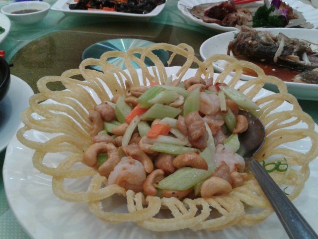第八道菜是炒丁,有腰果,芹菜,虾子,萝卜。我就是专挑腰果来吃滴·~~