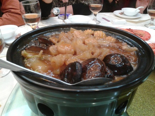 第五道菜名叫:盆满钵满(寓意赚多,存得多)~~~~里面噶材料挺丰富的,我只记得有冬菇(图片看着有,什么筋(忘记了,因为偶只顾着吃),其他都忘记啦··哈哈···这盆我比较喜欢,但是相对油腻····