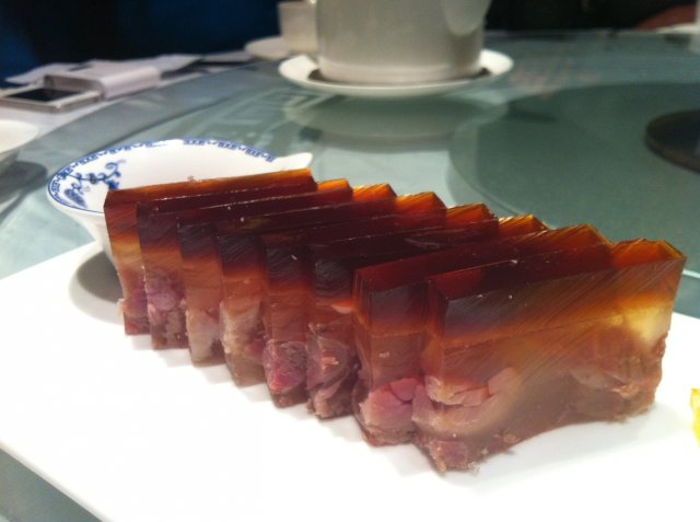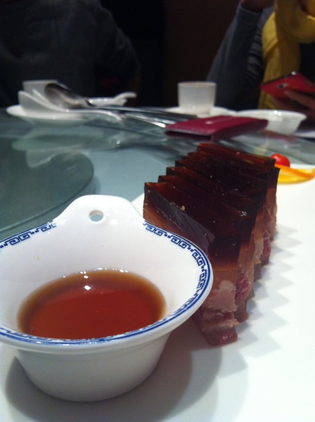 水晶肴肉貌如其名,晶莹剔透。。这是道凉菜,所以等我慢慢拍完照再吃不怕。哈哈。