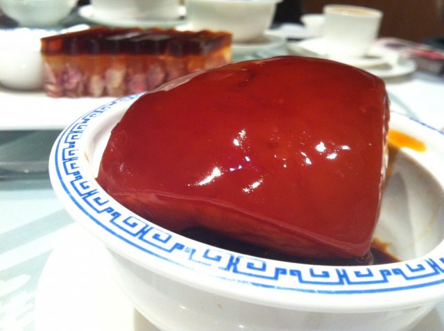 东坡肉不够酥烂。。瘦肉部分好硬的感觉。。囧。。 那酱汁超甜。。