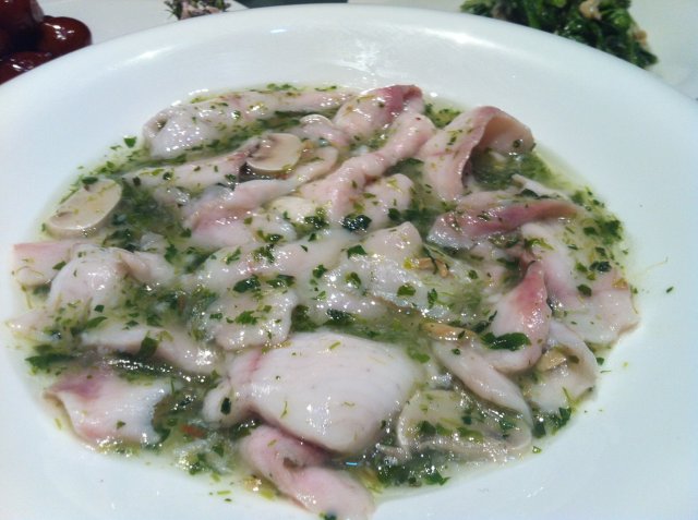 这个比较惹味,但是还是有点甜。。牛蛙分量不多。。转到我面前只剩一块了。。哭~味道还可以。我喜欢紫苏的味道。只是为何那么多姜在里面。还要切得跟杏鲍菇很像~~!