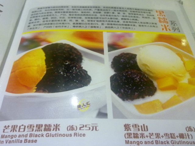公司安排在天河体育中心聚餐,结束后感觉吃的还是比较油腻,想去吃一份甜品,和同事一说正有此意就一起去,糖人汇之前在点评上看过团购,26块钱有双人套餐,也不用预约,手机团购了一份双人套餐和同事马上出去,位置很好找,就在天河城南门的正对面,我自己是很喜欢港式甜品,满记和许留山是我自己觉得口味比较纯正,和在香港吃的是差不多,我自己没什么要求,糖人汇标注的也说得是港式甜品,一进门就很快捷的下了团购的套餐,点了杨枝甘露、黑糯米白雪,杨枝甘露的芒果还是甜不会觉得酸,以为这个季节芒果会比较酸呢,白雪黑糯米我同事觉得还不错,黑糯米本身来有粘性,软软糯糯,加上鲜奶的味道,甜上加甜却不会觉得很腻人,鲜奶里面加了冰,和黑糯米的热度加在一起蛮有趣。
