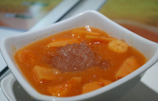 木瓜冰燕~网上好似推荐芒果冰燕噶~但选择噶甜品只有芒果蛋白同木瓜冰燕~心捻要个芒果卷就5要甘多芒果了~所以拣左呢个~木瓜5甜~所谓冰燕其实系晶莹噶果冻稍爽口~口感还好~木瓜汁底都错~但系5会好特别咯~
