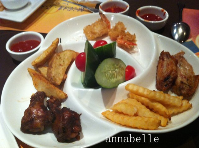 小吃拼盘,鸡腿、鸡翼味道调得几好,薯条有D淋。
