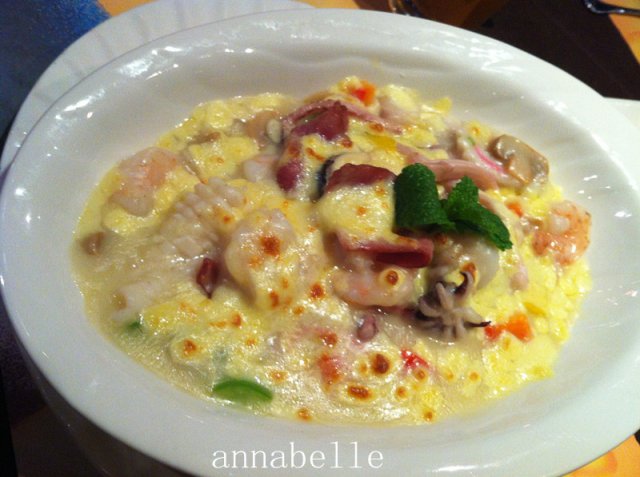 芝士焗饭芝士很多,好香,不过海鲜冰鲜,一般般。